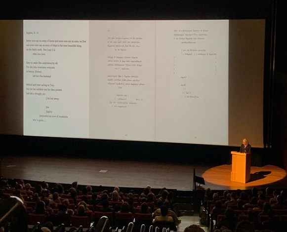 Anne Carson’s lecture “Stillness” at the Logan Center for the Arts. Photo by Critical Inquiry.