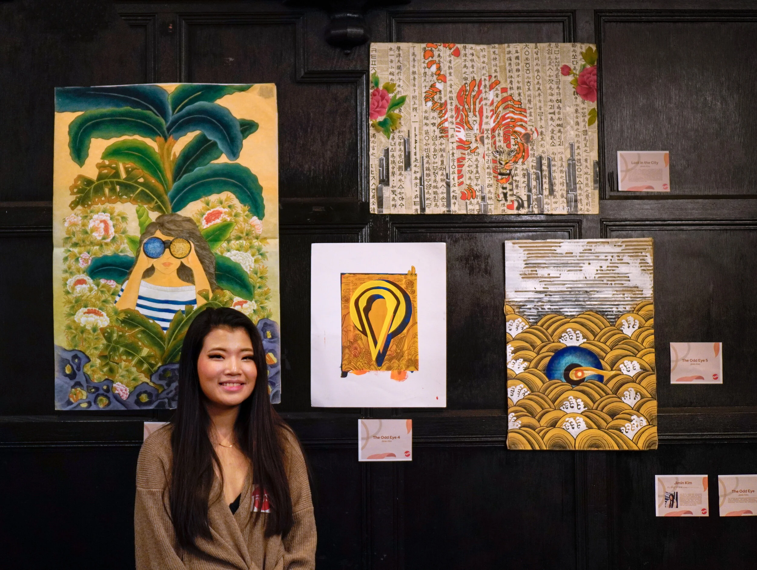 “My work focuses on the symbol of an "odd eye" that represents both traditional and contemporary cultural phenomena. This symbol demonstrates that traditional culture is not just a thing of the past, but rather can harmoniously come together with contemporary ideas. By incorporating the traditional Korean icons with contemporary designs, I use various media and techniques to portray how the two seemingly distinctive styles can create a unique harmony.”