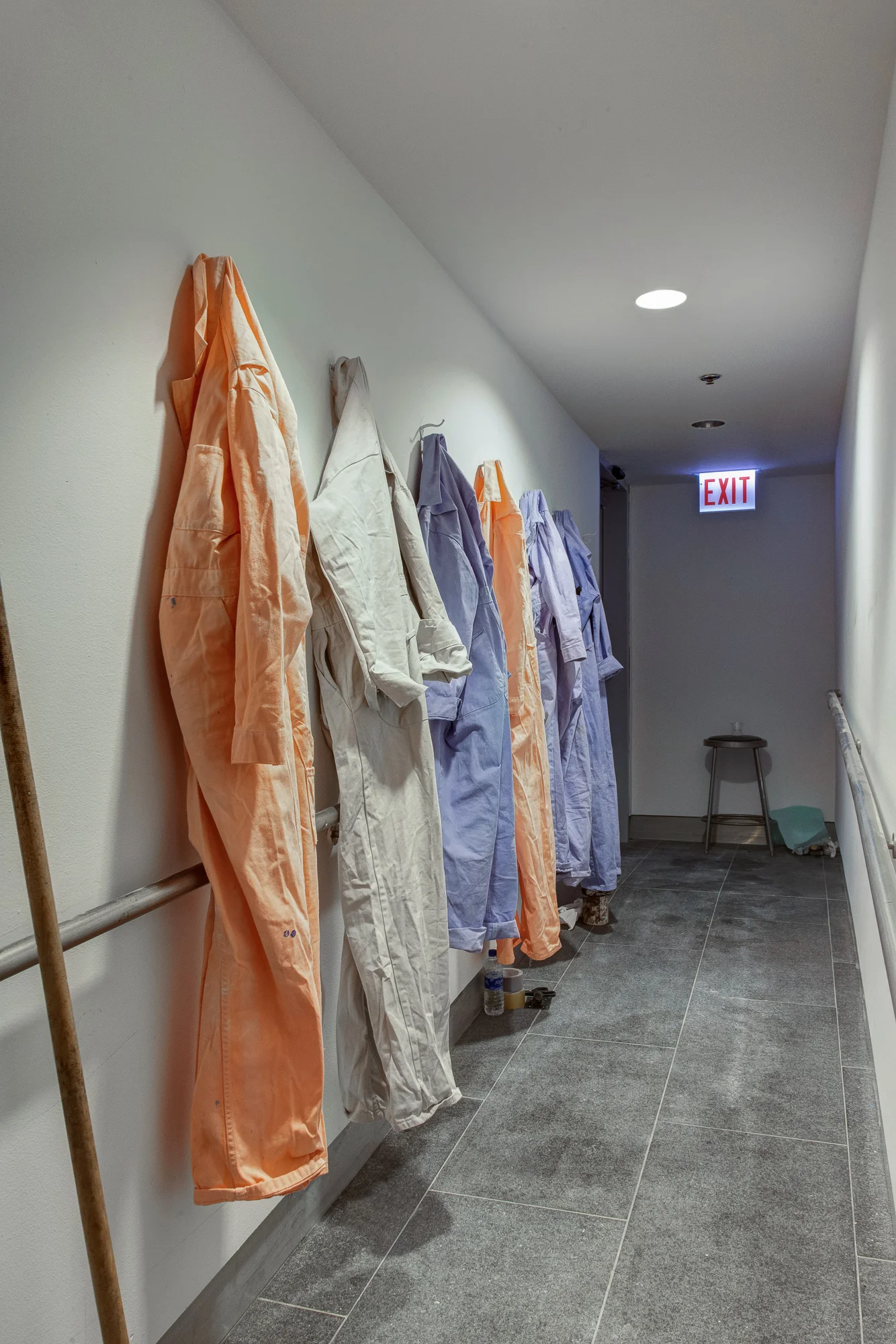 Builders jumpsuits. Installation view of Atlas Unlimited (Acts V-VI). Photo: Robert Chase Heishman