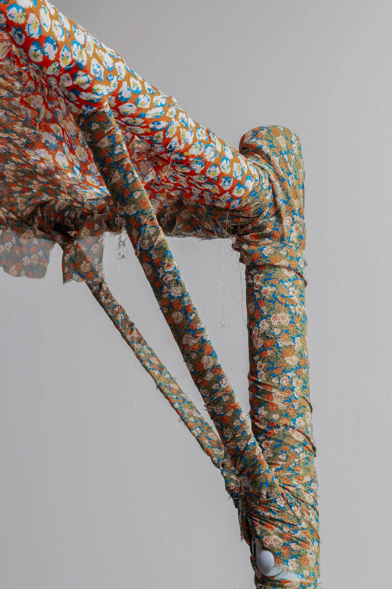 Builder Mohammad Miah’s traditional Rohingya textiles covering the Builder Jane’s sculpture. Installation view of Atlas Unlimited (Acts V-VI). Photo: Robert Chase Heishman