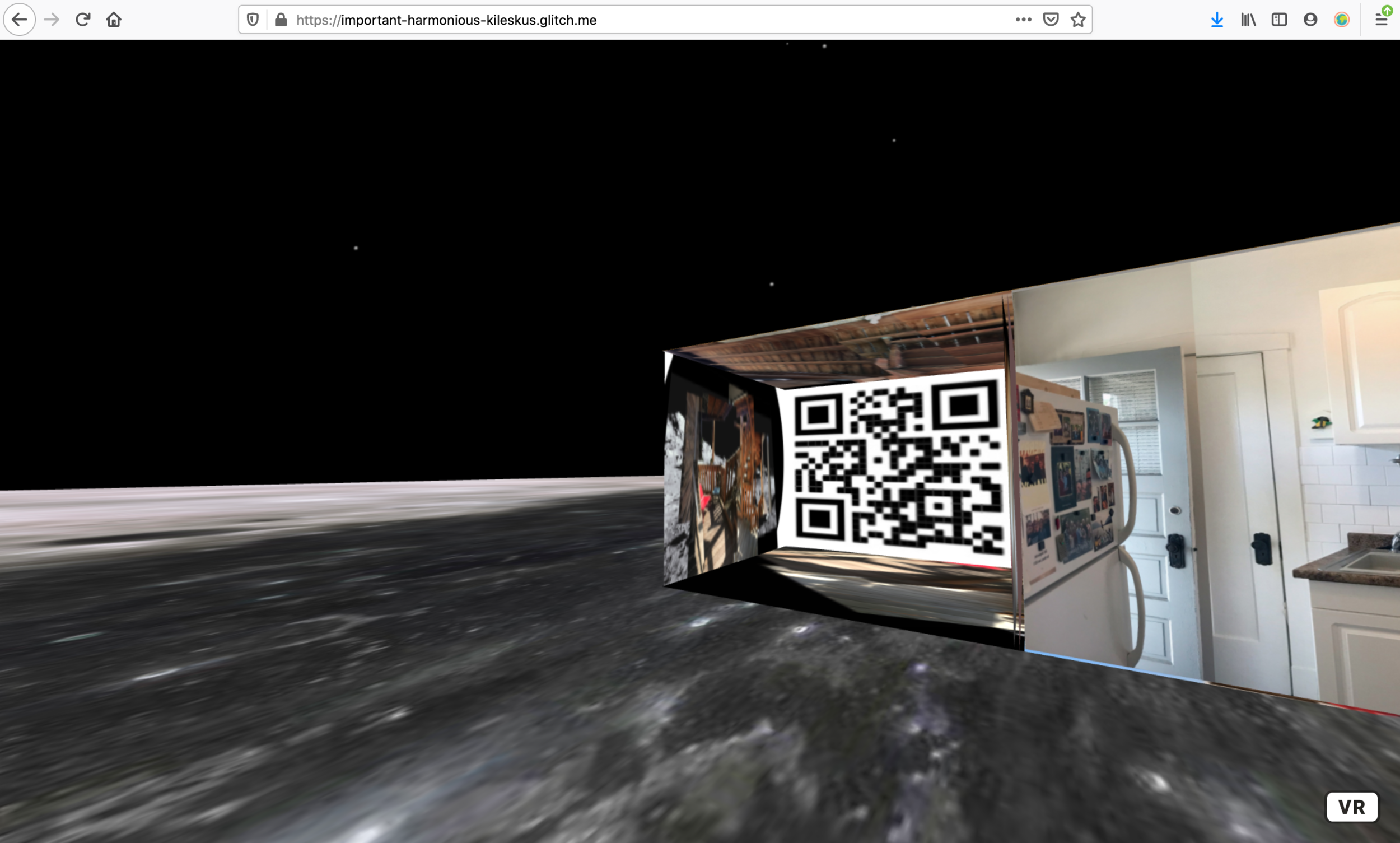 In a bathroom tiled with QR codes, you may find a video about Roman Baths, just as you may come across a laughing game elsewhere. Like the bathroom, many of the rooms took on hybrid functions. An exceptionally purple chamber was both a dance floor and an exhibition hall: framed on its walls were links to presentations by Gregory Bae, Andre Keichian, Lily Kind, Joestine Con-ui, Paul Rosero Contreras, and Carmen Amengual. In the kitchen, meanwhile, were some video recipes of some galactically inspired cocktails.