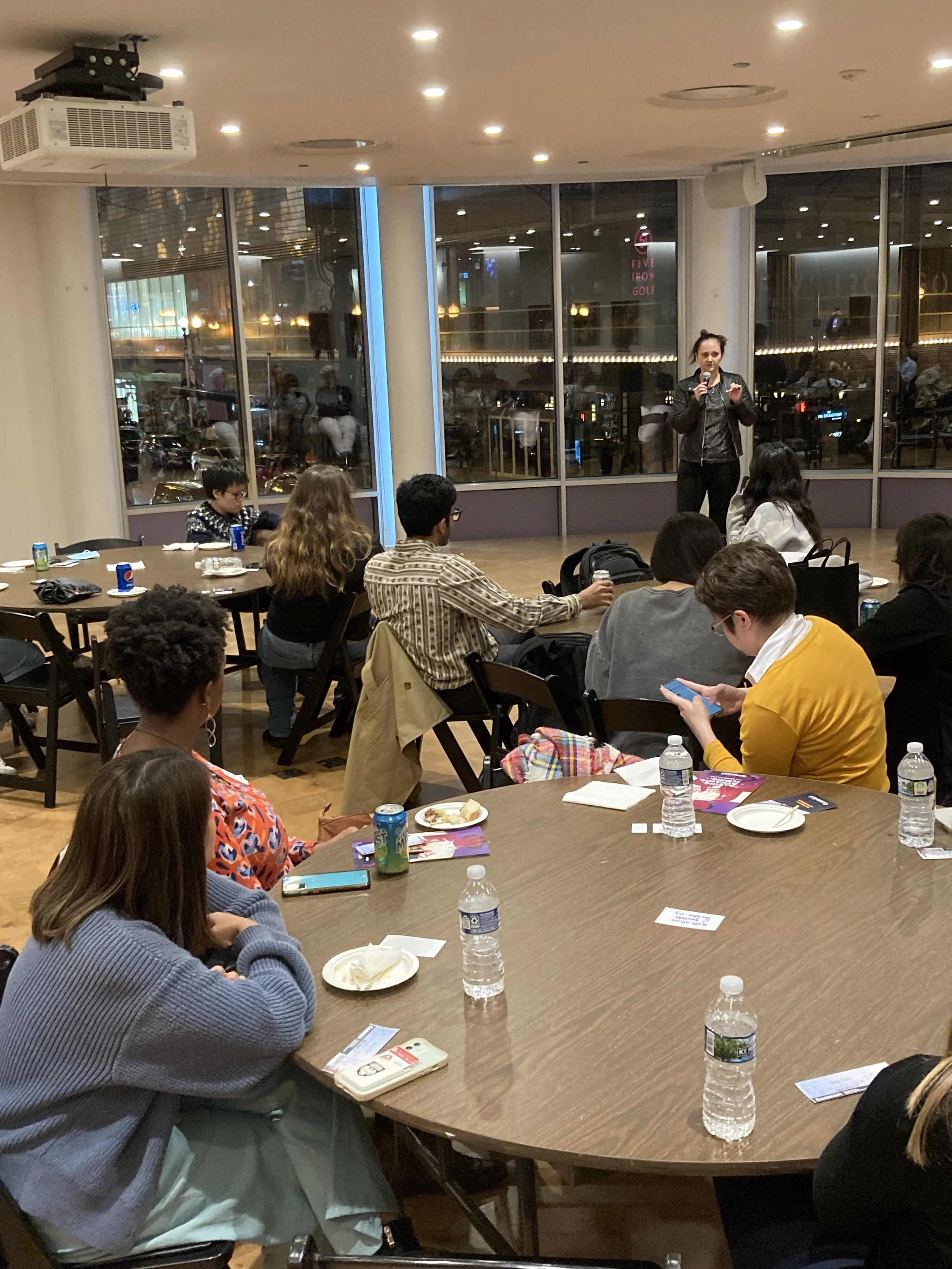 “An ArtsPass Exclusive outing of this kind with a behind-the-scenes component brings together students across varying academic disciplines for a collective arts experience and to meet students they might not otherwise encounter on campus or in classes,” shared Juelle Daley, Assistant Director of University Arts Engagement. “This is particularly important as we all continue to thaw out from the social isolation created by the Covid-19 pandemic. Though ArtsPass exposes our UChicago students to arts partners city-wide and on-campus, this Swing State event was also crafted to build community among students and foster student interaction and conversations around the arts.” As the first ArtsPass Exclusive in more than two years, the crowd that gathered for this event shows how hungry students are to get back to experiencing the world beyond campus together.